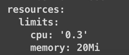 此範例程式的資源 limit 為 cpu 0.3 core memort 20Mi