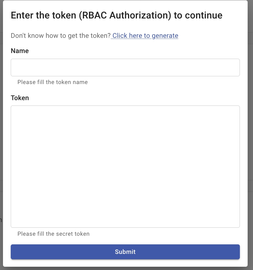 chaos-dashboard NodePort 10.43.147.66 <none> 2333:31252/TCP,2334:30208/TCP進入 dashboard 需要透過 token,可以透過 Click here 取得建立token 步驟